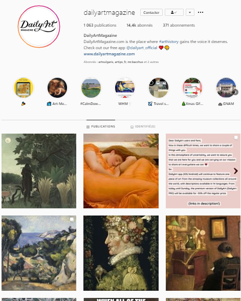 On a commencé cet article sur les chapeaux de roue alors on enchaine. Daily Art Magazine, c’est un peu LA BASE. Il fait partie de ses comptes-musées (comme j’aime assez bien les appeler) à la manière du compte A Painting A Day dont je parlais dans le premier article de cette série. Un incontournable, pour illuminer votre feed aux heures perdues.