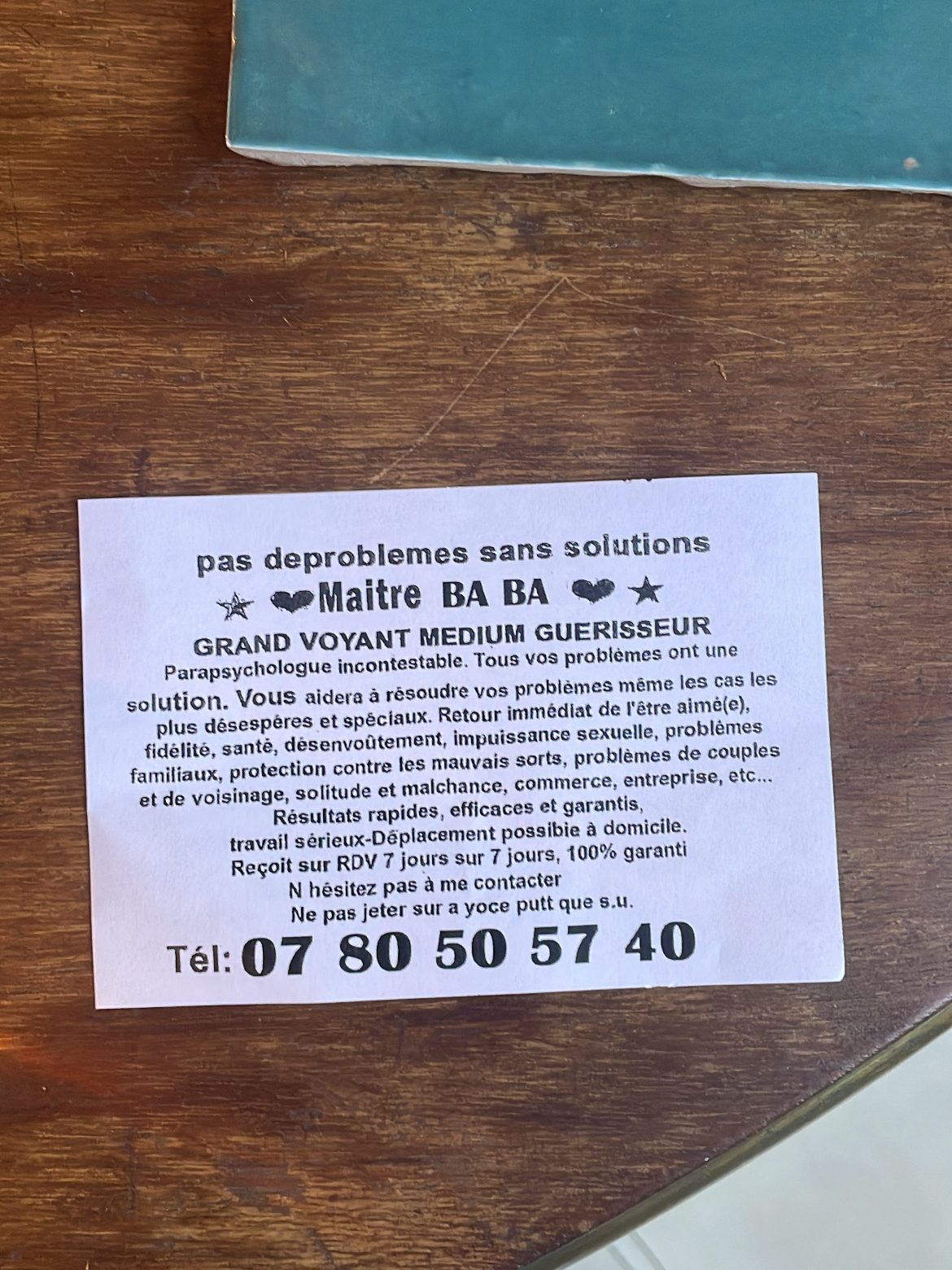 Quoi qu’il arrive, j’avais toujours pris les mauvaises directions. Mon instinct était, comme mon sens de l’orientation, une boussole inversée. Dans ma boîte aux lettres s’empilaient des tracts de grands voyants médiums guérisseurs proposant de résoudre l’entièreté de mes problèmes, même ceux que je n’avais pas. J’avais été repérée. Après tout, si j’étais vraiment une cause perdue, normal que je n’ai pas de vie de routine. Celle dont les étapes s’obtiennent une à une par mon entourage trentenaire comme les médailles de leurs marathons du samedi et que ma cousine Laura résume par « le cap où tes potes d’enfance tombent enceintes et les mecs sur les applications de rencontres sont chauves. »