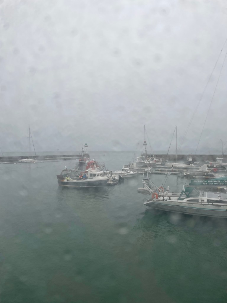 10 avril – C’était le départ en vacances, et je pensais qu’on se lèverait à quatre heures du matin, mais finalement c’était pour se recoucher et ne partir vraiment qu’à midi. Que le soleil nous suivrait jusqu’au bout de la côte mais il a fini par nous lâcher, et on est restés plongés dans la brume humide. Qu’on était passés devant la maison de Marcel Proust mais en fait ce n’était pas la bonne, et je me suis dit tant pis, et puis on a fini par passer devant quand même parce que c’était sur la route. Que je lirai dans la voiture mais en fait j’ai dormi en écoutant des instru de guitare en boucle. Que je louperai la mer parce que j’étais allongée sur la plage arrière et que je regardais la page blanche du ciel, mais non, elle était là, je l’ai sentie arriver, et elle sentait bon. Que je boirai de l’eau parce que je crevais de soif mais je me suis retrouvée même si j’avais pas de monnaie avec une cannette d’Orangina chaude sur le bateau. C’était pas si mal. Que le vent serait froid et la houle brutale, en fait ils étaient doux et légers. Que c’était le départ en vacances, sans savoir que ce serait le départ de quelqu’un. Surtout, je ne pensais pas ressentir cette brise en arrivant sur mon île, qui prendrait mon visage entre ses doigts comme un câlin, et déposerait ce baiser moite. Parfois, les choses ne se passent pas comme prévu.