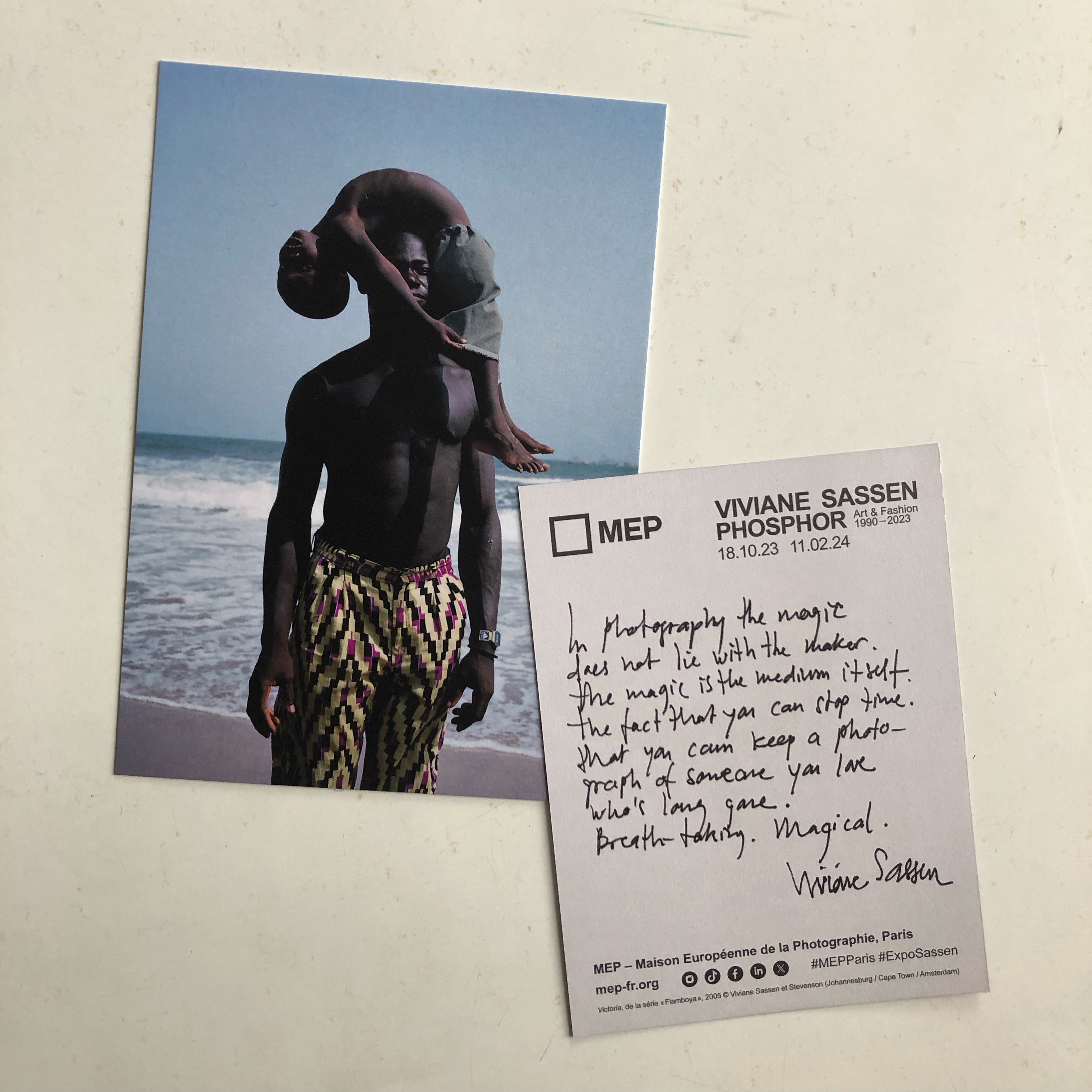 26 novembre – Certains arts, comme le café et le bon vin, ne s’apprécient qu’après un certain âge – entendre ici la maturité du vécu. Ce fut le cas pour moi avec la photographie. Je sens que mon oeil se rend plus malléable, glisse moins sur le papier glacé. Deux semaines plus tôt, perdue dans les allées labyrinthiques de Paris Photo, j’entends une jeune fille dire : « les photos de les gens, de la vie, je trouve ça trop stylé. » comme si les gens et la vie appartenaient à une mémoire du passé. Le cliché qu’elle regardait était en noir et blanc, ancré. J’ai pensé que c’était ce que je préférais. Deux semaines plus tard je m’émerveillas devant Viviane Sassen à la MEP, utilisant les couleurs pour faire jaillir l’ombre. J’ai tout remis en cause, avant qu’elle ne me dise : « the magic is the medium itself »