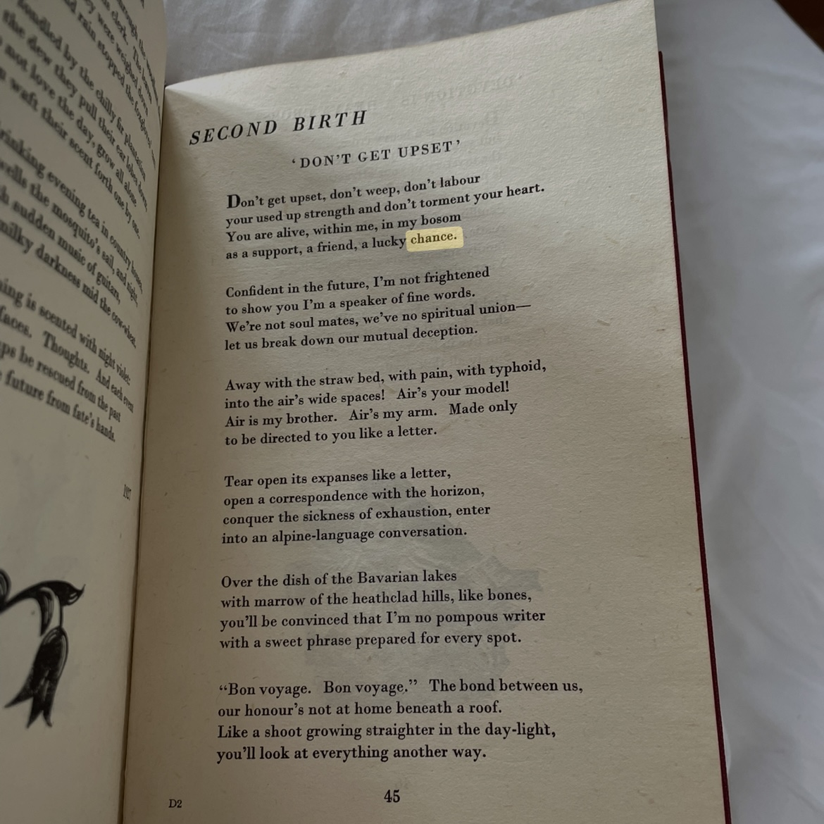 📷 ce qui apparaît quand je tape « chance » dans mon téléphone (Boris Pasternak, Selected Poems)