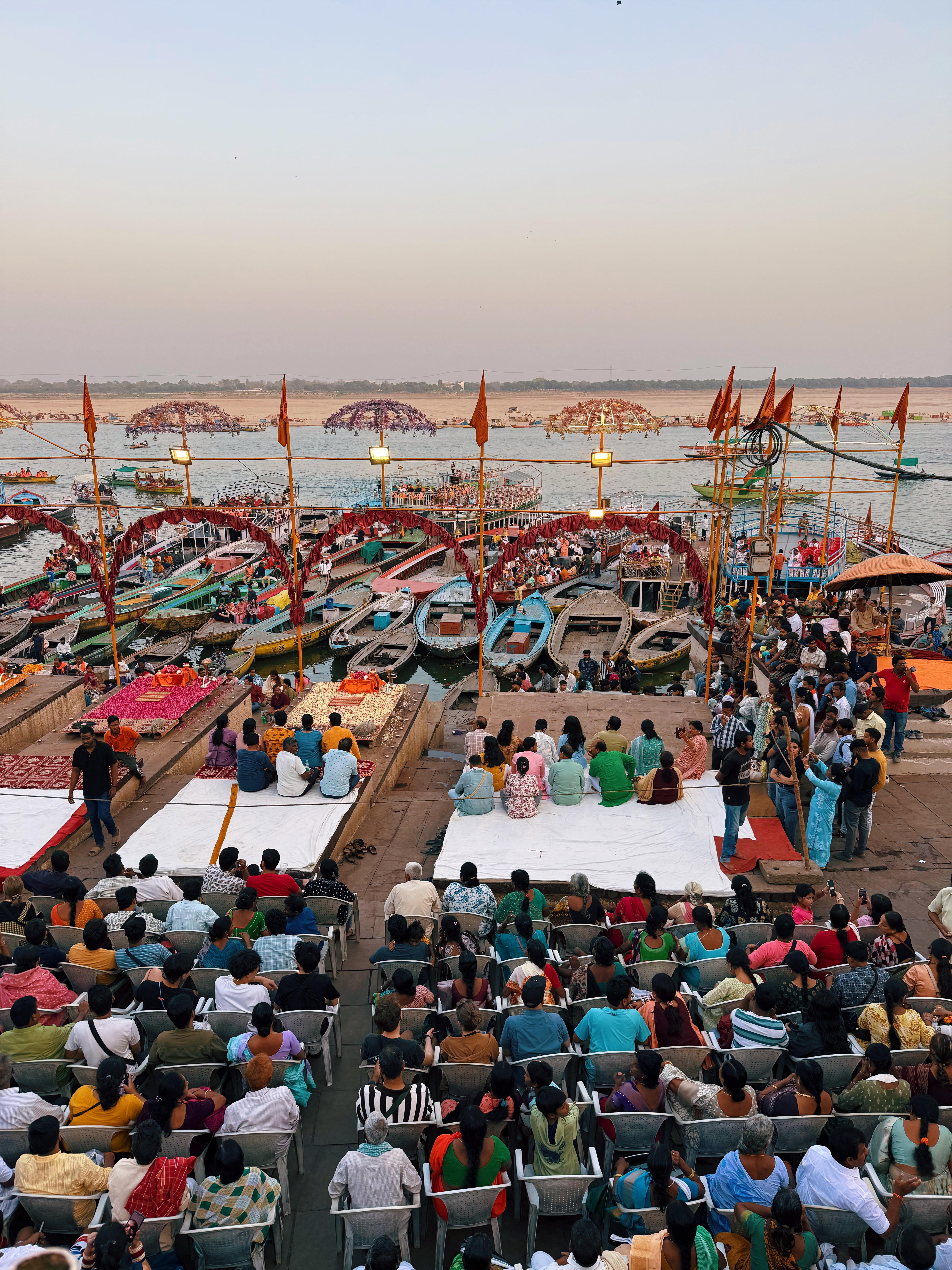 Depuis que je suis arrivée, j’essaye de comprendre l’hindouisme. Une de ses notions principales, le Māyā, est l’idée que tout ce que nous vivons autour de nous est faux, superficiel, nous voile de la réalité. L’ « Après » est seul à compter. C’est pour cela que Varanasi, où je me suis rendue pour la célébration d’Holi, est aussi importante. Pour les hindous c’est la ville du dieu Shiva, qui incarne la destruction, donc la renaissance, là où s’arrête la douleur et commence un nouveau cycle. Mourir à Varanasi est un immense privilège. La ville voit trente mille personnes brûlées par an, sur les ghats, crématoriums à ciel ouvert répartis le long du Gange. Les morts y sont embaumés, plongés dans le fleuve, avant d’être consumés sur les grands feux. Ces bûchers tournent à plein régime, toute la journée, toute la nuit, et c’est dans cette même ville que sont dispersés les pigments colorés célébrant le printemps. Ils se mélangent à cette poudre de cendres qui remplit l’atmosphère. Quand on sait que pour certaines communautés chaque couleur à un sens, comme l’amour, l’égalité, c’est très beau. Shiva lui-même est le dieu de la nuit, recouvert de cendres sur sa peau bleutée. Ce sombre n’est pas triste. De même que le noir, qui est l’ensemble des couleurs, incarne profondeur et liberté en son sein.