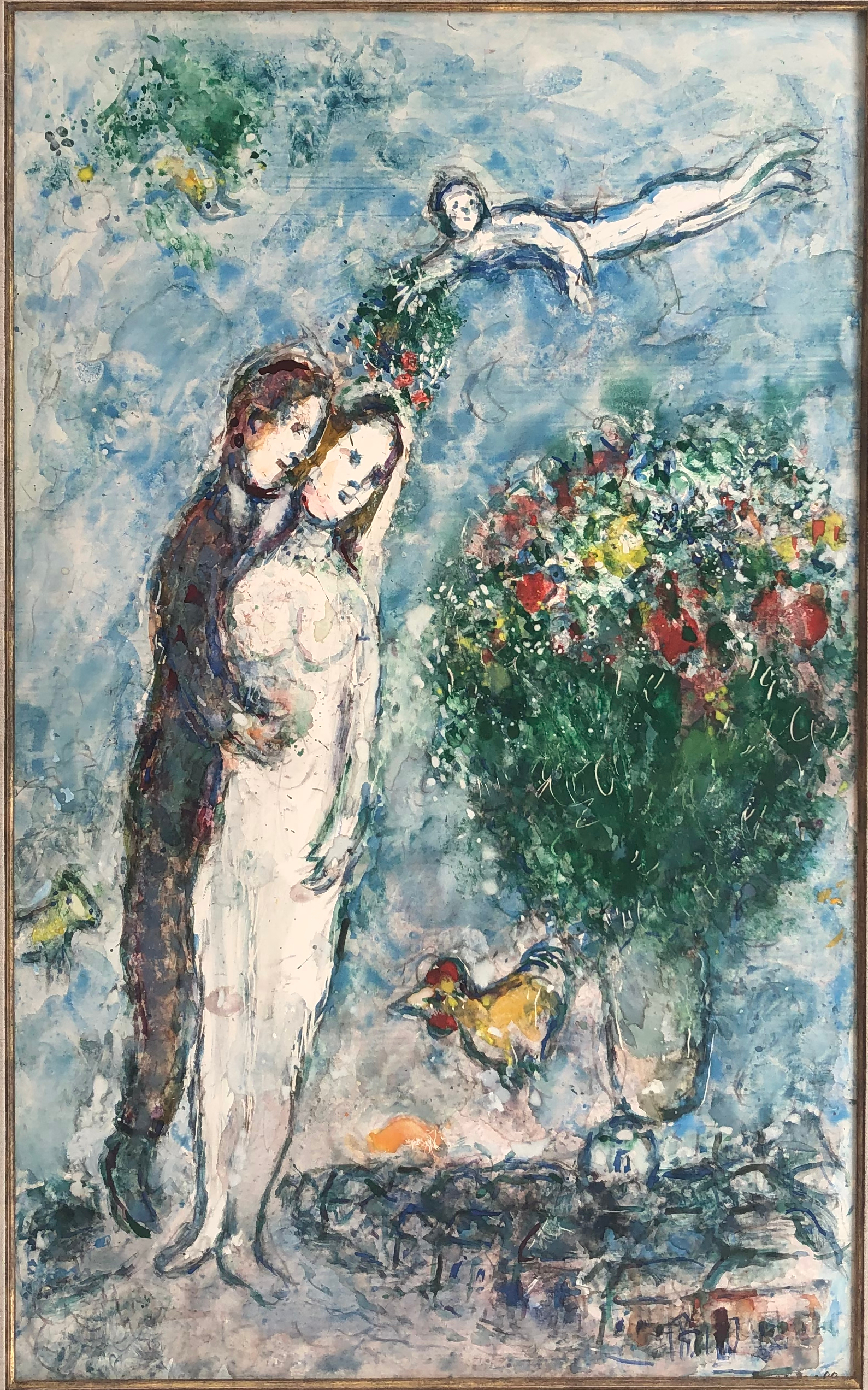 Les Mariés – Marc Chagall (1887 – 1985) Tempera sur panneau 65 x 40 cm