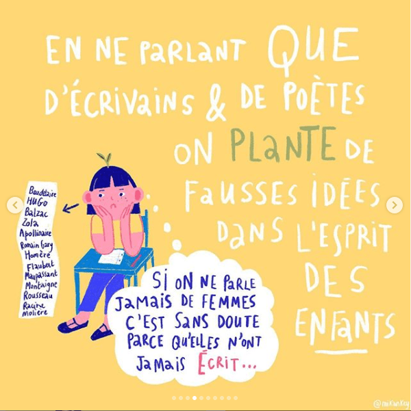 Je tiens beaucoup à parler des femmes car je ne comprenais pas pourquoi en lettres modernes, les auteurs abordés étaient toujours des hommes. J’ai toujours été quelqu’un d’indignée face à des situations injustes et la question des femmes est un des sujets qui m’indigne le plus ! Des artistes comme Pénélope Bagieu et ses Culottées ont ouvert la voie à cette envie de s’intéresser davantage aux femmes et à ce qu’elles ont accompli sans qu’on le sache, car elles sont trop souvent oubliées. J’ai le sentiment qu’une véritable sororité se met en place, une nouvelle génération de nanas partagent ce qu’elles aiment et se serrent les coudes entre elles.