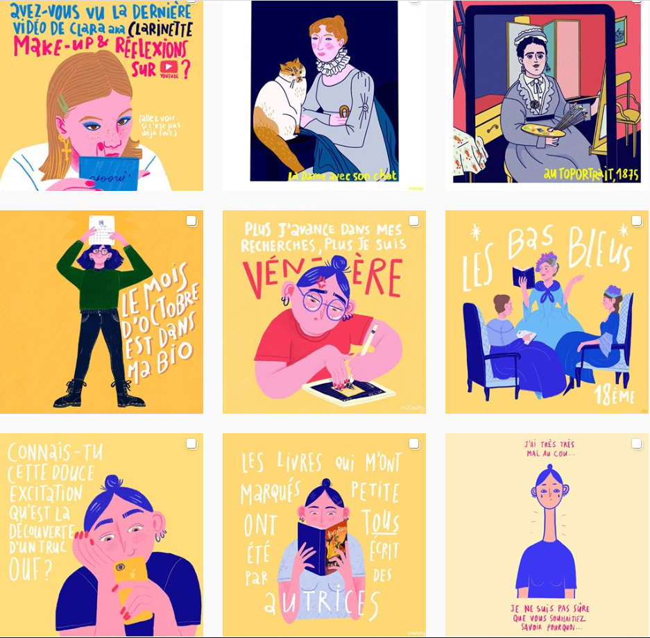 Je dirais que je fais des dessins assez simples pour illustrer des sujets qui me tiennent à cœur ou qui me passionnent, comme la littérature ou les femmes dans l’histoire. Je pense qu’aborder ses sujets sous forme de dessins permet d’attirer un public parfois réticent à, ou de vulgariser des sujets compliqués. Mais je fais aussi des dessins qui parlent de trucs débiles qui me sont arrivés dans la vie : exemple me tordre le cou en dansant !