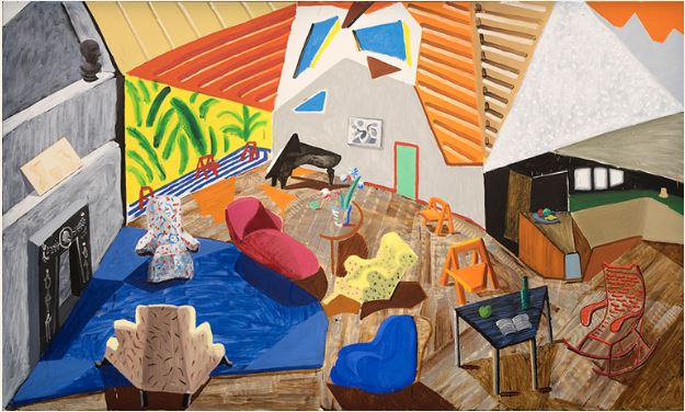 Aujourd’hui on parle de David Hockney et de sa Toile Large Interior, Los Angeles. J’adore David, j’adore ce tableau, ne perdons pas une minute de plus.